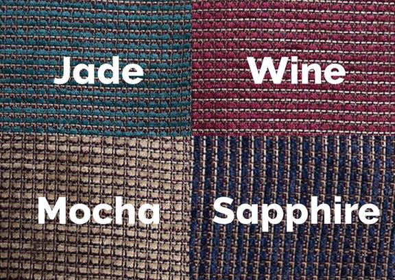 Choose from Jade, Sapphire, Mocha, or Wine fabric.