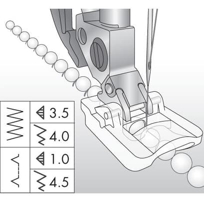 For that extra touch, highlight any sewing project with strings of pearls or beads. The beads will run smoothly through the groove under the foot while you sew for beautiful results.