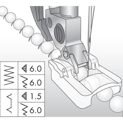 For that extra touch, highlight any sewing project with strings of pearls or beads. The beads will run smoothly through the groove under the foot while you sew for beautiful results.