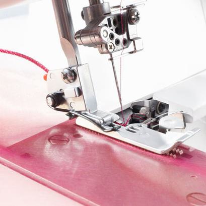 Tip: * 40 wt. rayon embroidery threads in a contrasting color in the upper and lower loopers will give a shiny colorful edge.