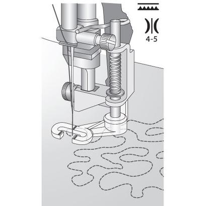 - Lower the Open-Toe Free-motion Foot into the free-motion/darning position by either selecting the free-motion icon on the touch screen of your machine or manually setting the presser foot lifter in the free-motion position.