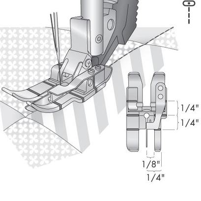 - The guide of the presser foot will follow exactly in the center of the pieced seams so you can quilt perfectly.