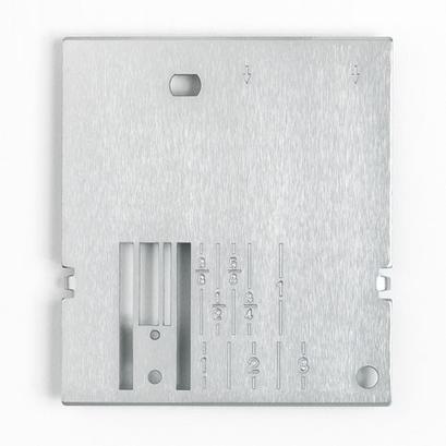 The Straight Stitch Needle Plate guarantees even fabric feed at the beginning and end of a seam, while preventing the fabric from being pulled into the needle plate.