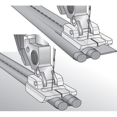 - Put the covered cord under the two grooves of the presser foot and sew it onto your sewing project.