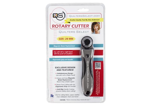 The Quilters Select Rotary Cutter’s innovative ambidextrous design ensures precise cutting from the left or right side. The unique and easy magnetic blade replacement system means you’ll never drop a blade again! Available in 28mm, 45mm or 60mm blade sizes, with replacement blade packs for each!